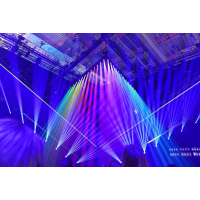 Источник света: LASER-модуль RGB 20 Вт. Диапазон угла раскрытия луча 1°-4°, равномерное пятно без хотспота. Блок эффектов: фильтр размытия луча, 6-гранная линейная и 16-гранная круговая вращающиеся призмы.