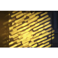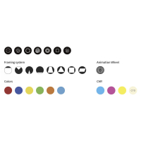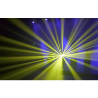 В наборе эффектов: 4 лезвия для профилирования луча с поворотом рамы +/- 90° и полным перекрытием луча одним лезвием, система синтеза цвета CMY + СТО + 6 дополнительных ярких цветовых фильтров на отдельном колесе. Колесо заменяемых полноповоротных гобо (дихроика), 2 призмы: 8F радиальная + 6F линейная с двунаправленным вращением и взаимным наложением, колесо анимации, 2 линейных Frost-фильтра (light + heavy), Iris 5-100%.