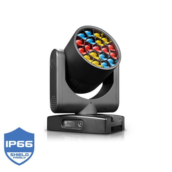 Вращающаяся голова LED-WASH-BEAM-KALEIDO-IP66. 19 LED-чипов RGBW 40 Вт, световой поток 8600 лм, угол раскрытия луча 5°–46°, пиксель-маппинг, эффект KALEIDO