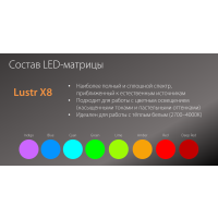 Источник света: LED-модуль с синтезом света RGB-CIALdR (Красный, Зеленый, Синий, Голубой, Индиго, Янтарный, Лайм, Темно-Красный).