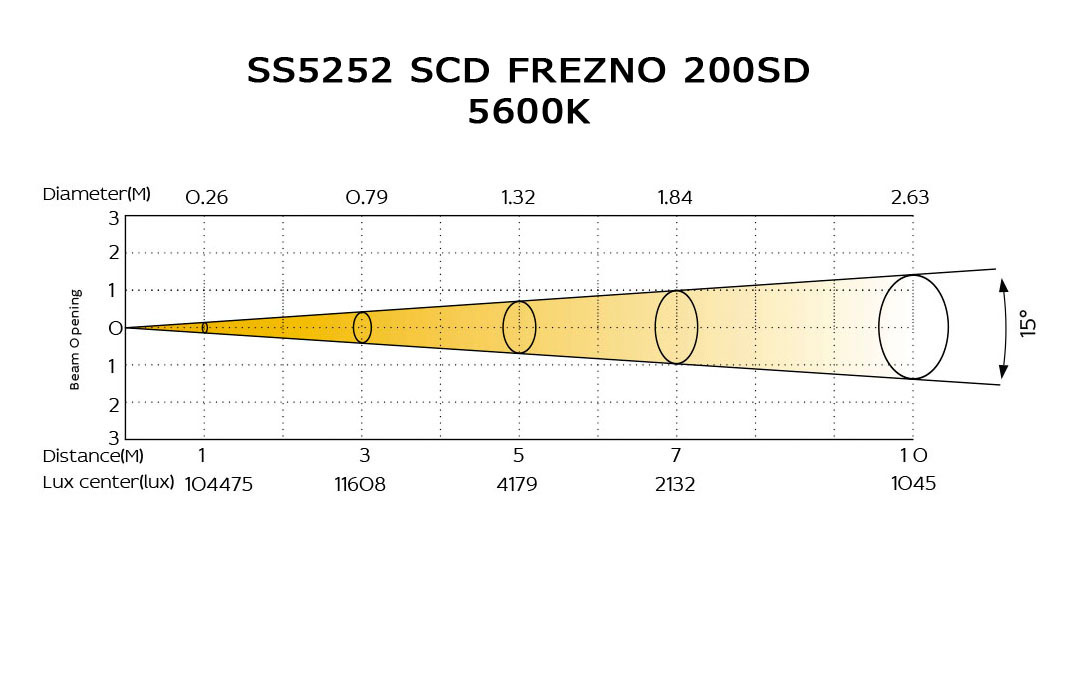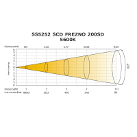 Стабильная цветовая температура 5600К с силой света 104500 кандел, (аналог 2000 Вт лампе), мягкое, равномерное поле освещения позволяют использовать FREZNO 200SD совместно с галогеновыми лампами, а лучше вместо них. Опционально можно установить 8-ми лепестковые кашетирующие шторки для снижения бокового ослепления и задания формы луча, цветовые и размывающие фильтры.