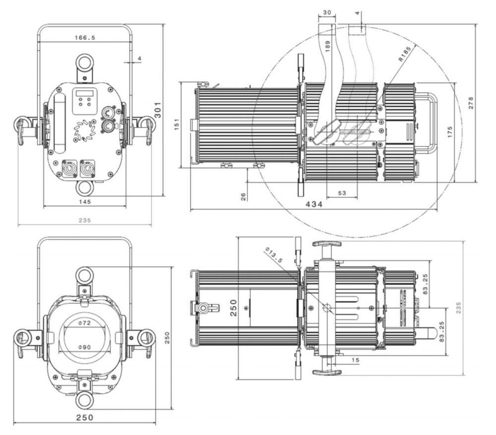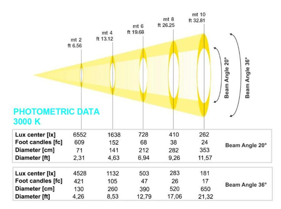 Угол раскрытия луча настраивается в диапазоне от 20° дo 36°. Возможность изменения частоты мерцания светодиода от 610 до 20000 Гц делает его идеальным решением для использования не только на театральных площадках, но и на телевидении.
