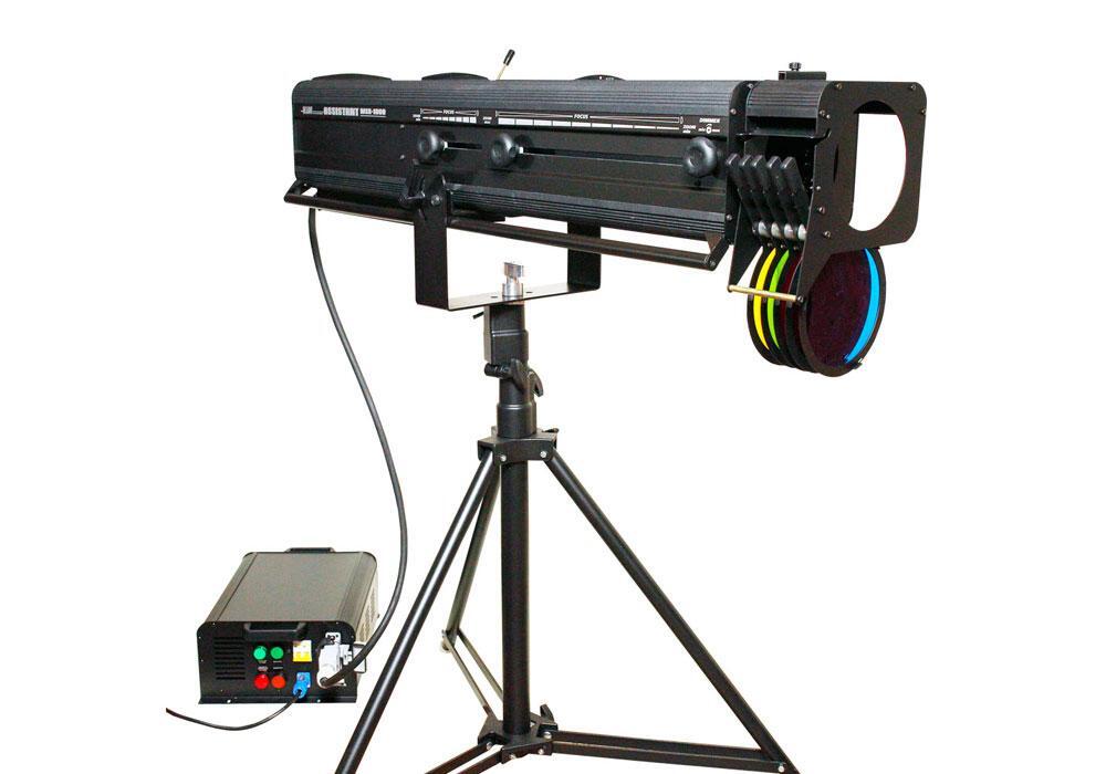 Прожектор следящего света на газоразрядной ламе MSR-1800. Один из немногих ламповые приборов на рынке. Все функции управления ручные и расположены на корпусе прибора. Оператор может регулировать яркость, настраивать размер пятна при помощи диафрагмы или оптически, устанавливать гобо, использовать кассету светофильтров c 6 слотами (кассета покупается отдельно). Типичная рабочая дистанция прожектора ASSISTANT MSR-1800 может достигать от 45 до 70 метров поэтому прожектор подходит для большинства типовых театральных или концертных залов или для более масштабных спортивных арен.
