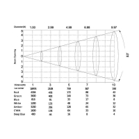 Оптика 50°х60° дает широкую заливку поверхности, а 2 подвижные секции прибора с индивидуальным управлением мощности дают еще более увеличенное поле освещения, чтобы идеально ровно залить задник театральной сцены или студийную площадку. Индекс цветопередачи более 90 Ra при калибровке цветовой температуры «белого» от 2700К до 8000К. Максимальная освещенность на 5 м 760 люкс и это при таких широких углах. 6 вариантов управление DMX-512, в том числе HSIC управление цветом, авто режим, персональные программы, цветовые макросы, строб-эффект до 25 Гц, 16 bit диммер. Потребляя всего 340Вт, прибор является наиболее мощным театральным заливным прибор на рынке.