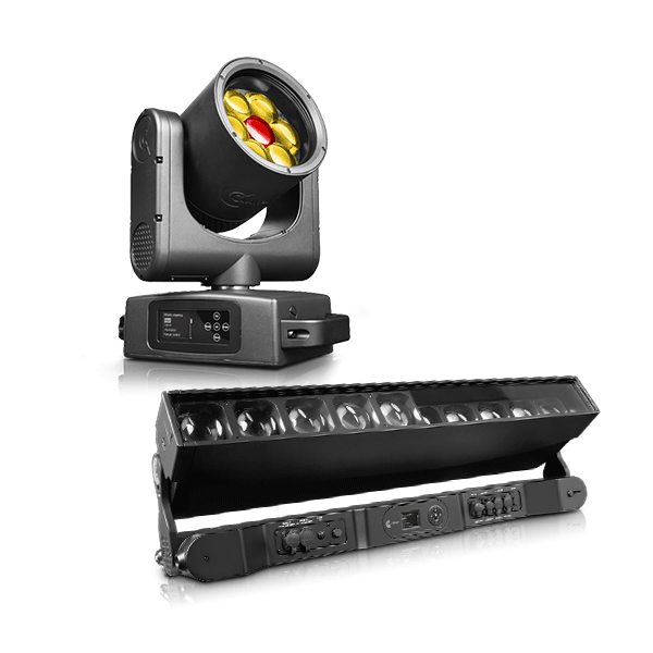 Вращающаяся голова LED-BEAM-WASH-PIXEL-FX-IP66. 8 LED-чипов RGBW по 60 Вт, угол раскрытия луча 5,2°–39,0°; 160 LED-чипов WHITE 6500К по 3 Вт
