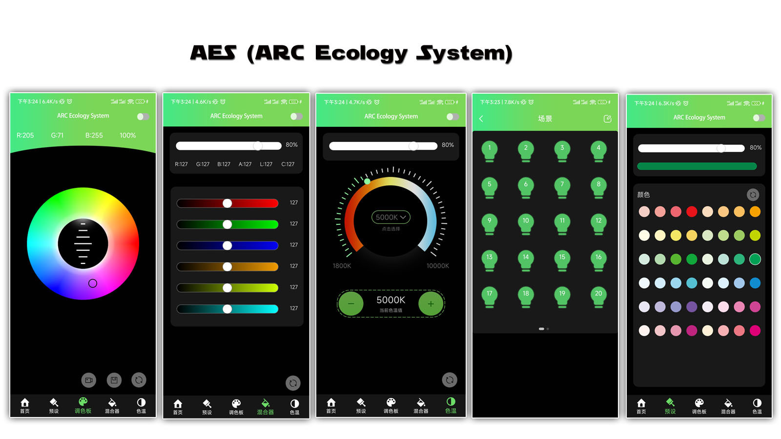 Кроме стандартного управления DMX-512 и RDM, можно дистанционно управлять прибору по радио каналу W-DMX (опция). Но основная новинка – это управление прибором через смартфон по Bluetooth и NFC!  Новая, собственная разработка производителя – программное обеспечение «AES» (ARC Ecology System) позволяет быстро настроить диммер, цветовую температуру, выбрать любой цвет, настроить собственные цветовые палитры и многое другое.
