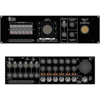 Модуль распределения для объединения и маршрутизации питания переменного тока, балансного аудио и RMS-подключения к акустическим системам Meyer Sound.