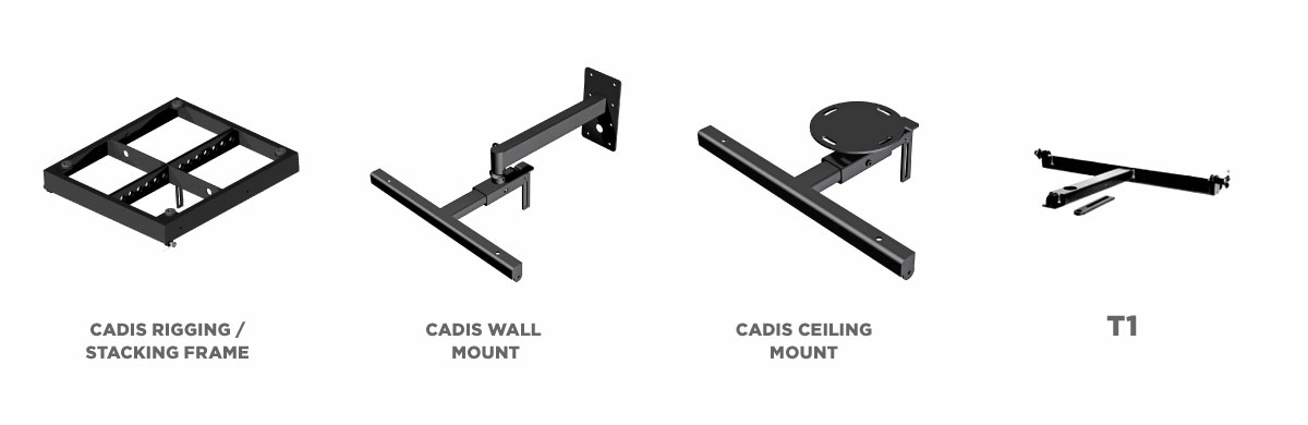 Следуя первичной затее разработчиков серии CADIS, инсталляторы могут использовать акустические системы не только в привычных граунд-стеках или подвесах. Пользователям предоставлена возможность выбора любого размещения массива в пространстве, для чего подготовлены штатные конструкции для настенного и даже потолочного крепления.