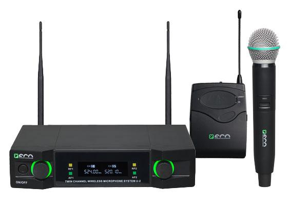 Модельный ряд радиосистем ЕСО состоит из одно- и двухканальных моделей с ручными и головными микрофонами. Частотная сетка несущих частот позволяет одновременно использовать до 8 микрофонов.