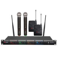 Беспроводная микрофонная система UHF-диапазона с четырьмя ручными микрофонами