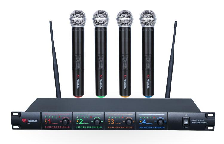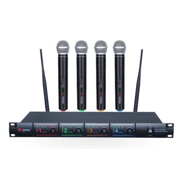 Беспроводная микрофонная система UHF-диапазона с четырьмя ручными микрофонами