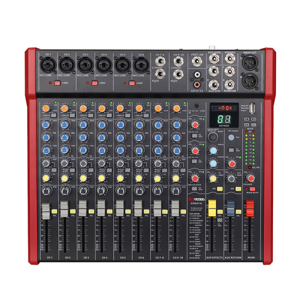 Mикшер STARLET 62 располагает очень убедительным для своих размеров и стоимости инструментарием — новейшие малошумящие микрофонные предусилители (их количество для каждой модели указывает первая цифра в названии), 4 стереопары (2 из которых оснащены самым полным набором регулировок параметров), 100-программный цифровой процессор эффектов, 3-полосные эквалайзеры входных каналов, многоформатный аудиоплеер (USB+Bluetooth) и аудиоинтерфейс для работы с ПК.