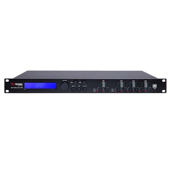 MAXIMUM 26 — это профессиональный управляющий процессор, созданный и произведённый специально для VOLTA специалистами компании MARANI. Процессор удовлетворяет всем требованиям к разделению частот кроссовером и предназначен для сценического использования. Устройство оснащено двумя аналоговыми входами и шестью аналоговыми выходами, мощным DSP MARANI® и 24-битными АЦП/ЦАП. Для каждого входного канала доступны 31-полосный параметрический эквалайзер, чувствительность, пороговый шумоподавитель, RMS-компрессор, внутренний генератор белого/розового шума и настраиваемая задержка. Для каждого выходного канала предусмотрены 7-полосный параметрический эквалайзер и кроссоверные фильтры, которые обеспечивают срез от 6 до 48 дБ/октаву. Также для каждого выходного канала доступны пиковый лимитер и задержка.