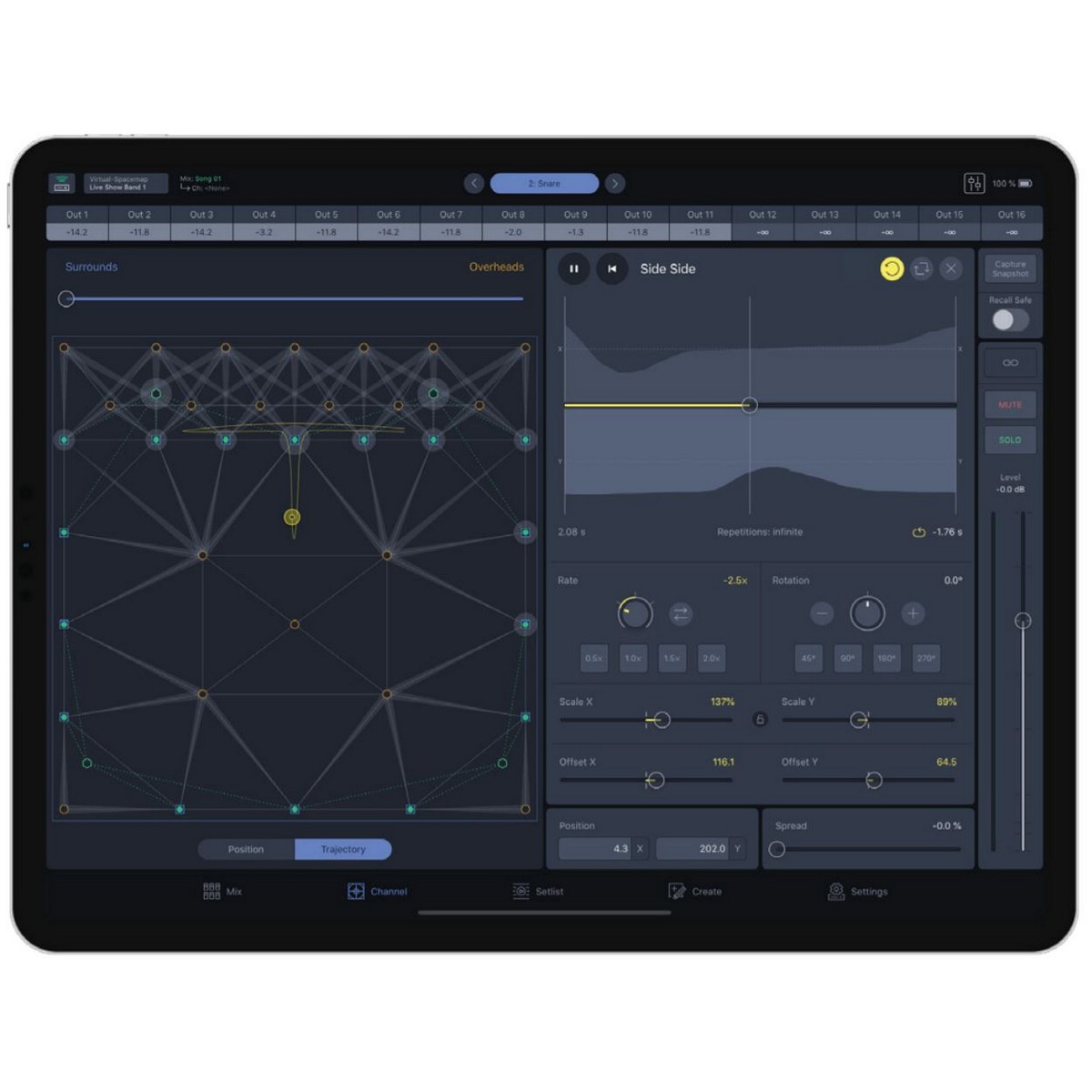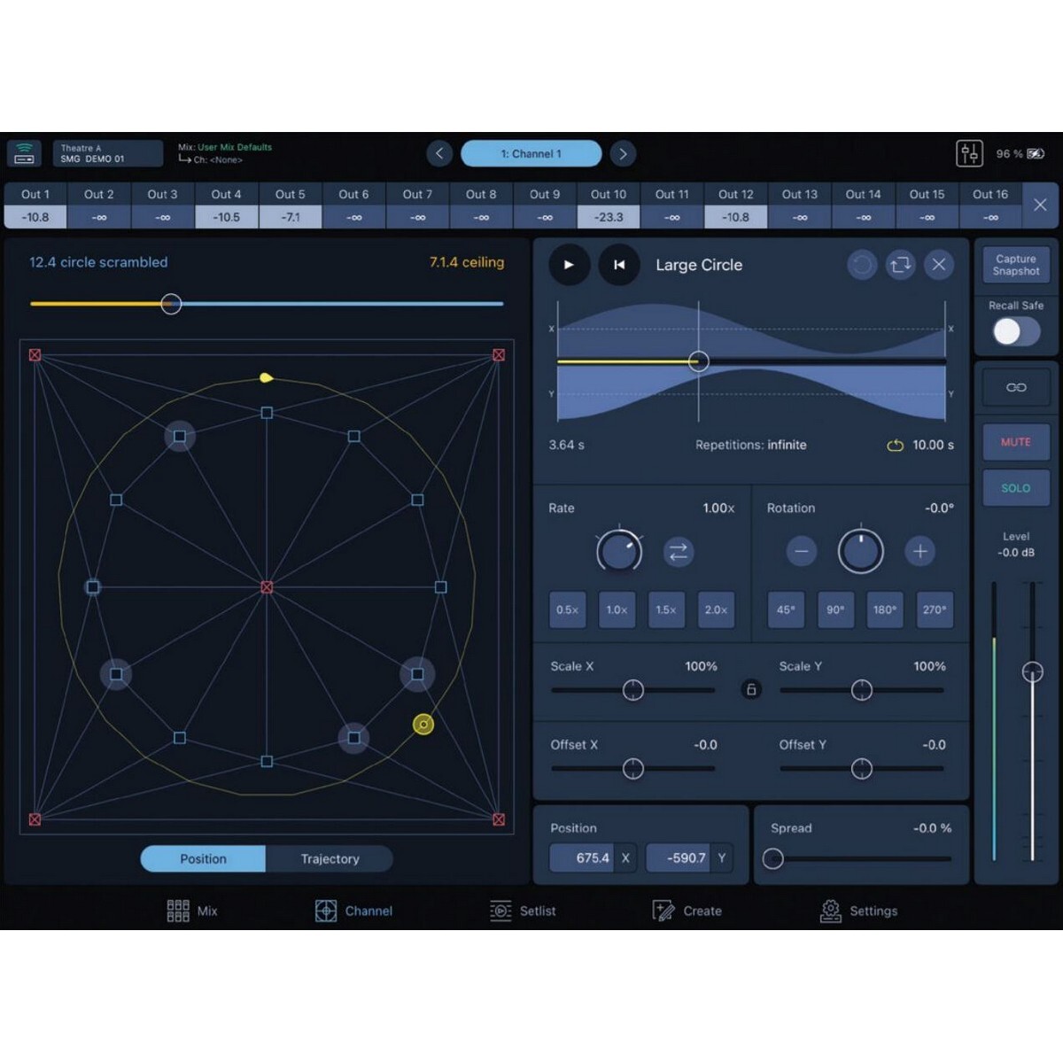 Spacemap Go — это инструмент пространственного звукового дизайна и микширования, который использует вычислительную мощность сетевой платформы Meyer Sound Galileo GALAXY и управление в интуитивно понятном приложении для iPad.