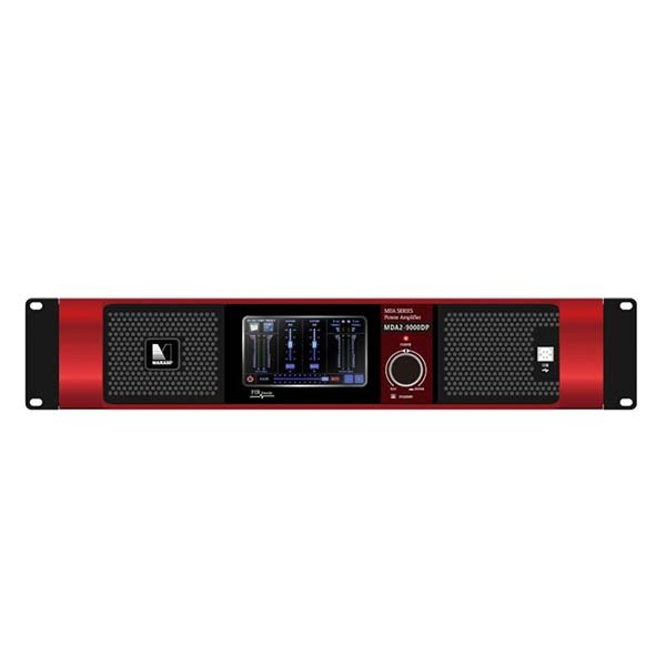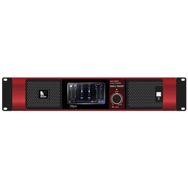 MDA2-9000DP — это высокопроизводительный и высокомощный цифровой усилитель мощности для турового применения. Он имеет общую выходную мощность 2x3000 Вт и 2 канала с импедансом 8 Ом. Устройство обладает встроенным мощным цифровым процессором с 2 входами и 2 выходами. Сенсорный дисплей 4,3" высокой чёткости отображает состояние системы, а достаточная мощность обеспечивается мощным встроенным процессором DSP, что позволяет этому усилителю мощности работать как в составе стационарных систем, так и мобильных звуковых комплексов.