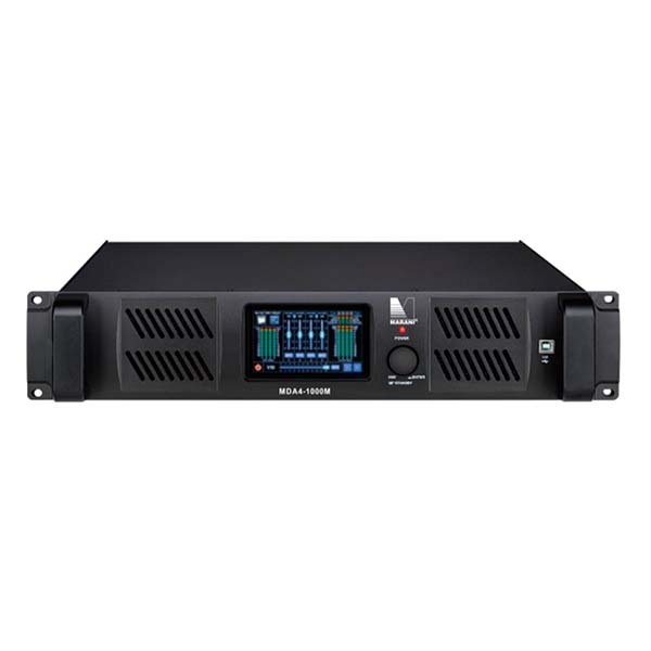 MDA4-1000M — это очень универсальный, мощный и интеллектуальный 4-канальный усилитель с DANTE интерфейсом. Усилитель обладает мощностью до 4x950 Вт при импедансе 4 Ом или способный управлять 70-вольтовыми линиями распределения. Устройство, разработанное для самых требовательных мобильных и стационарных звуковых систем, отличается полным набором необходимых характеристик, таких как высокая выходная мощность, эффективная система охлаждения, встроенный DSP и USB/Ethernet для мониторинга и управления с помощью ПО на ПК.