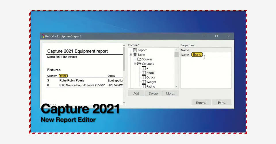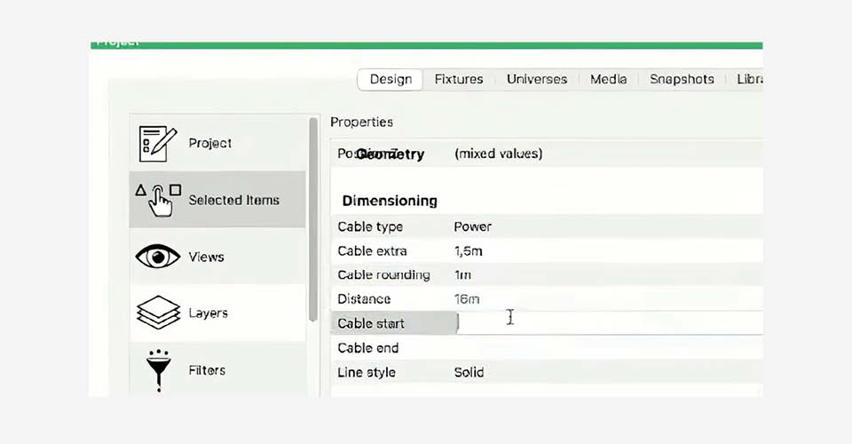 Несомненным преимуществом Capture является его универсальность инструментария. Он подходит не только для визуализации вашего шоу, но и для создания документации, которая расскажет о вашей сцене если не всё, то многое. И в 2022 году к этим отчетам добавится возможность указать длину кабеля. Для этого в инструментарии появился новый пункт Cable. Он позволяет автоматически измерить и подписать созданные вами «укладки» кабеля, а также в последующем добавить эту информацию в отчеты.