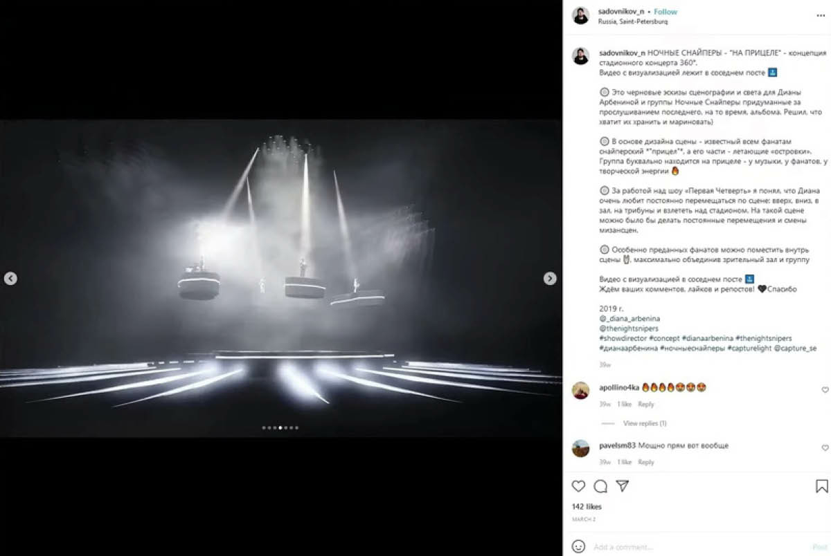 Например, вот работа Садовникова Никиты с концепцией стадионного концерта на 360 градусов группы Ночные Снайперы.