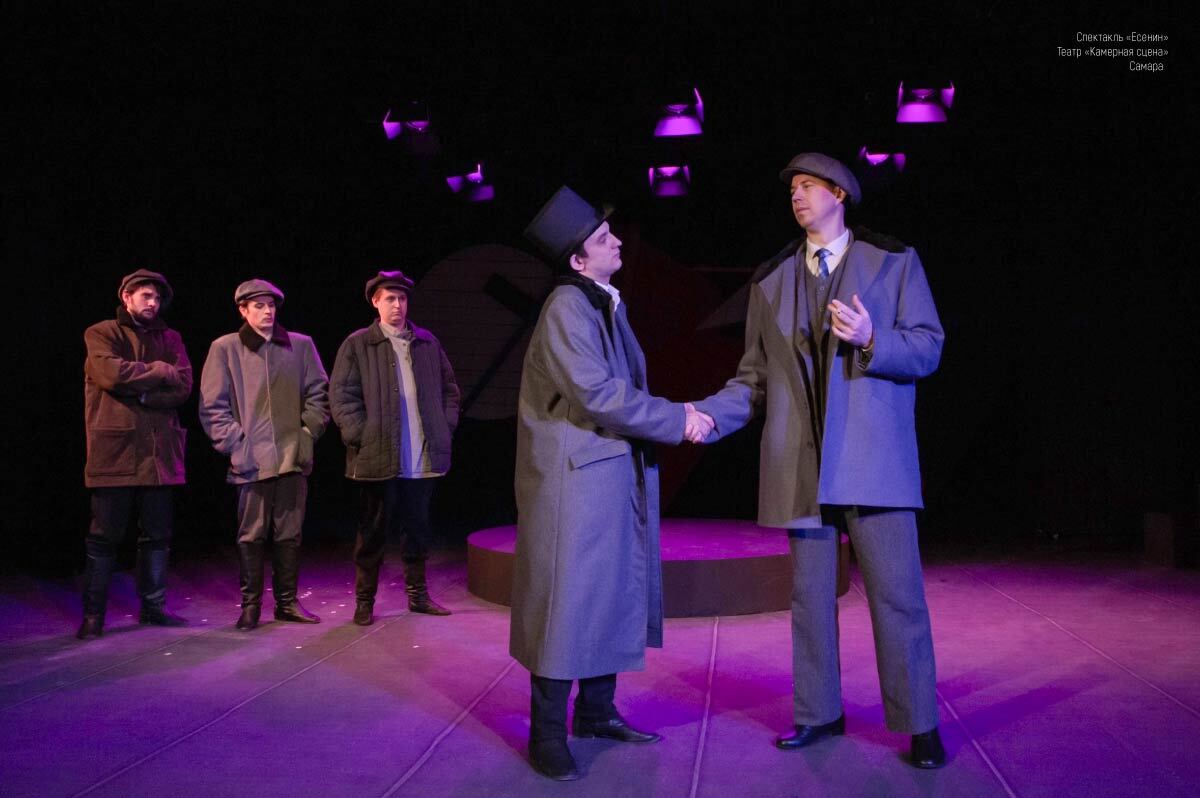Рис. 5. Прожекторы FRENELLED 100 COLOR в спектакле «Есенин»: создание темного пурпурного фона. Кашетирующие шторки эффективно отсекают лишнюю засветку.