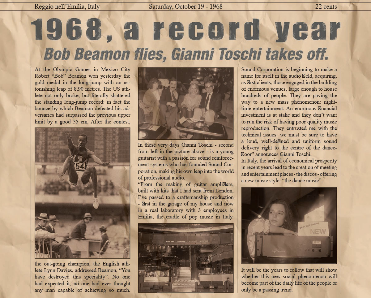 Самый короткий и в то же время всеобъемлющий ответ на вопрос «Кто такой Джанни Тоски» будет такой: «Джанни Тоски – это профессия»! Это профессия предпринимателя на поле профессионального звукоусиления, которую я приобрёл в 1968 году, основав группы Sound Corporation sas. Это длинная дорога удач и потерь в создании современного производства звукового оборудования.