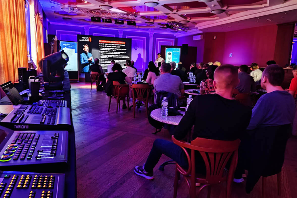 Ещё один яркий момент семинара — практическая демонстрация современных пультов управления сценическим освещением. Роман Скибо рассказал об особенностях различных моделей, разъяснил отличия в функциональности и предложил методику оценки характеристик оборудования при покупке.
