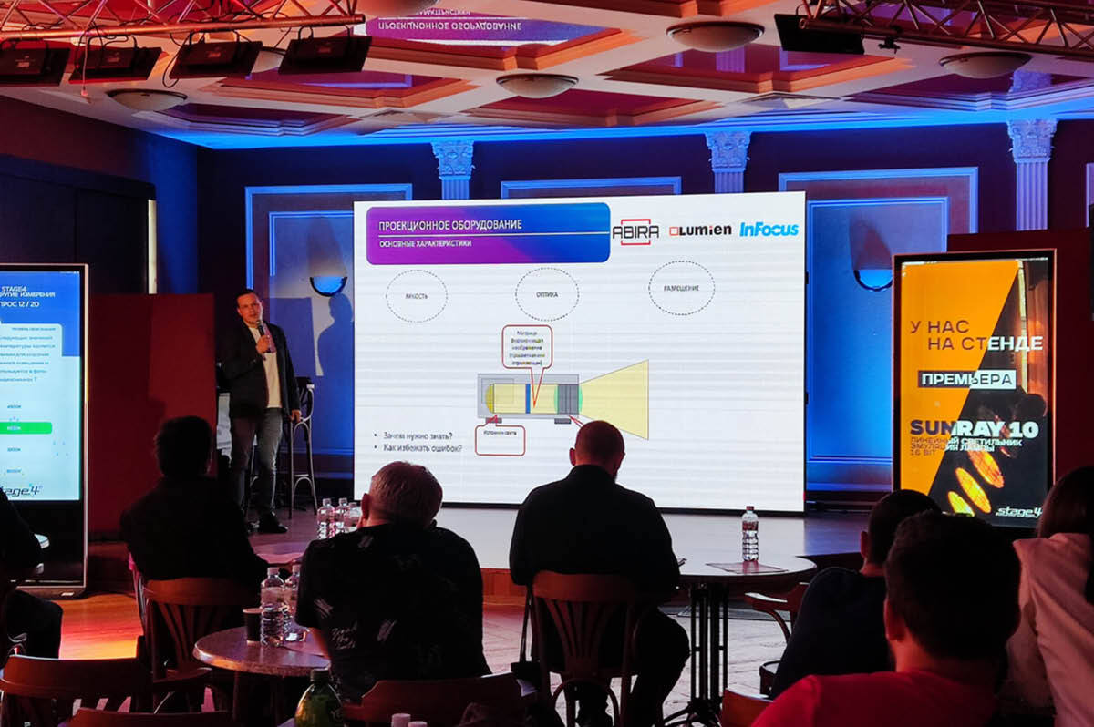 Завершающим аккордом стало выступление Сергея Гнутова о правилах подбора видеопроекторов и экранов для учреждений культуры. Сергей подробно рассказал о требованиях к оборудованию, необходимому для качественного отображения творческих проектов, используя в качестве примеров продукцию известных брендов — Abira, Lumien и InFocus. Участники узнали о различных типах проекторов и экранов, их технических характеристиках, тонкостях установки и настройке, позволяющих добиться идеального качества изображения.