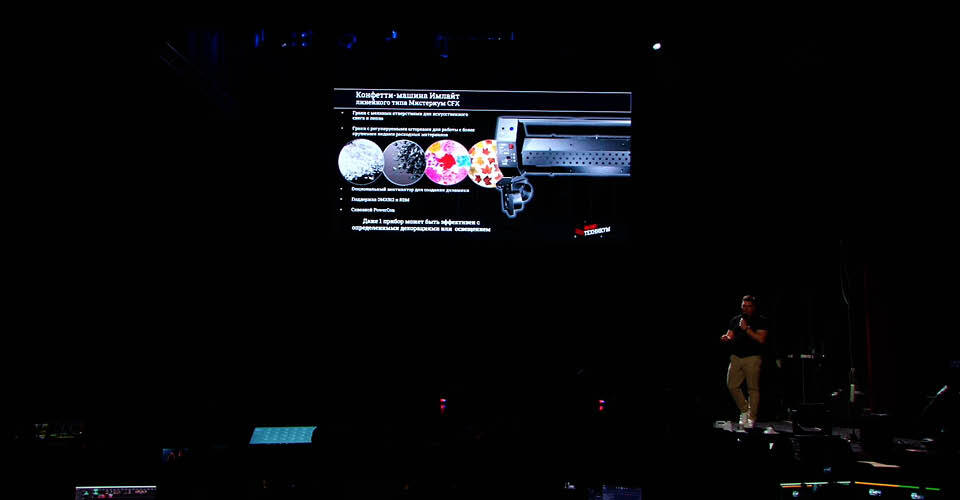 В Кемерово мы подробно рассказали о конфетти-машине Мистериум CFX, собственной разработке STAGE4, показали альтернативы дефицитным высококачественным жидкостям, а также обсудили особенности применения генераторов спецэффектов в разных условиях.