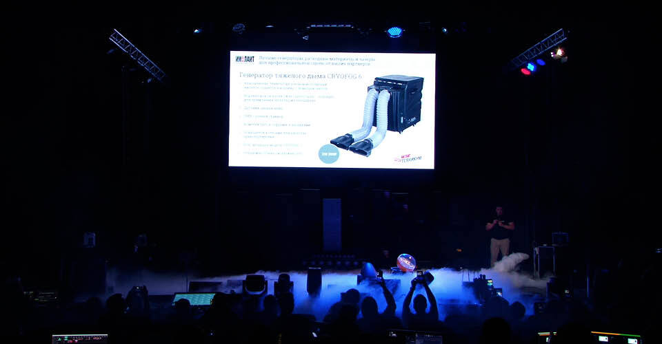 Принимая участие в региональных мероприятиях, мы всегда считаем необходимым представить максимально широкий спектр базовых спецэффектов. Только так можно на практике сравнить, например, эффект тяжёлого дыма, создаваемого с помощью сухого льда, и аналогичный эффект от ультразвуковых испарителей воды. Или понять разницу между туманом от хейзеров, работающих с жидкостями на водной и масляной основе.