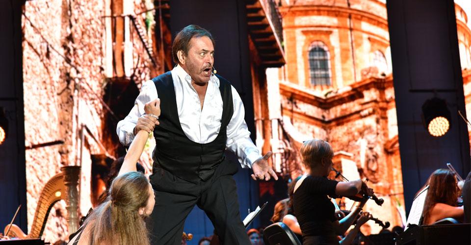 Центральные экраны (5 полос по 2,5 x 6 м) мы использовали в качестве видеодекораций к оперному спектаклю, чтобы максимально погрузить зрителя в постановку. Также для трансляции оперного спектакля (а также в последующем для гала-концерта звезд мировой сцены) мы использовали портретные экраны с размерами 4,5 м x 7 м, которые были смонтированы на боковых порталах и на пультовой башне.