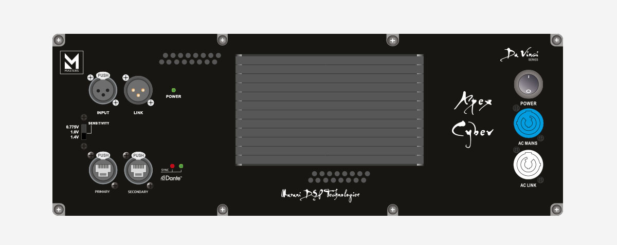 Управляющий процессор DA VINCI CYBER является воплощением всех инноваций как MARANI, так и индустрии в целом. Возможности, предоставляемые DSP новых акустических систем, поистине парадоксальны — пользователю предоставляется самое большое в индустрии количество полос параметрического эквалайзера с 16 типами фильтров, RMS-компрессоры и лимитеры, способные работать в автоматическом режиме, IIR-, FIR- и MIR-фильтры, система компенсации неравномерности человеческого слуха и, наконец, последняя версия автоматической настройки и коррекции сигнала MARANI AEQ, предназначенная для работы с основными составляющими звукового сигнала всеми известными методами. Кроме того, программное обеспечение MASTERS позволяет объединять элементы массива в группы, что облегчает работу с комплектом в целом.