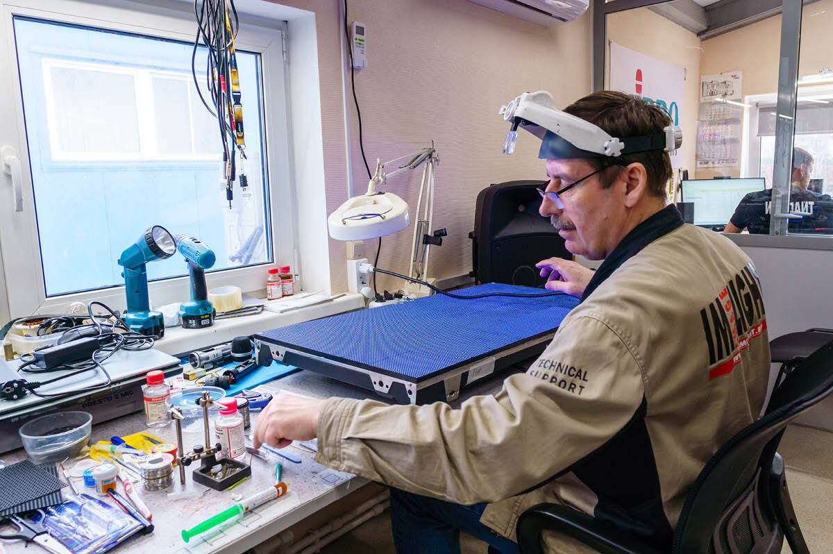 Сервисные инженеры компании имеют большой опыт и необходимые знания для проведения работ по диагностике и ремонту светового оборудования. Проводим полный цикл работ, включающий в себя: