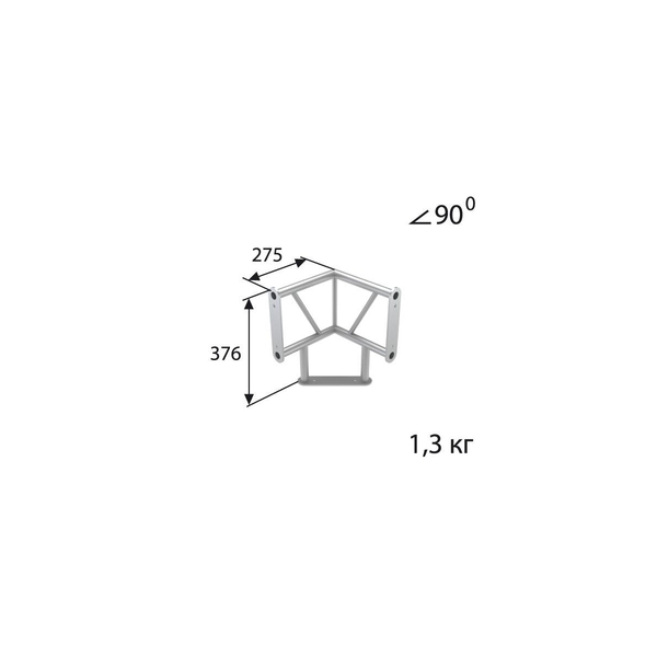 Стыковочный узел для 3-х ферм под 90˚, вертикальный, d28х2 \ d16х2мм.