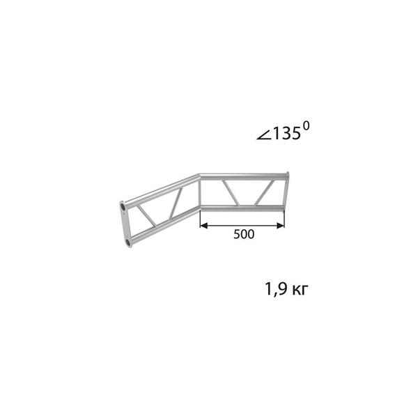 Стыковочный угол 135 градусов, вертикальный, d40х2 \ d16х2мм. Крепежный размер 130мм, М10.