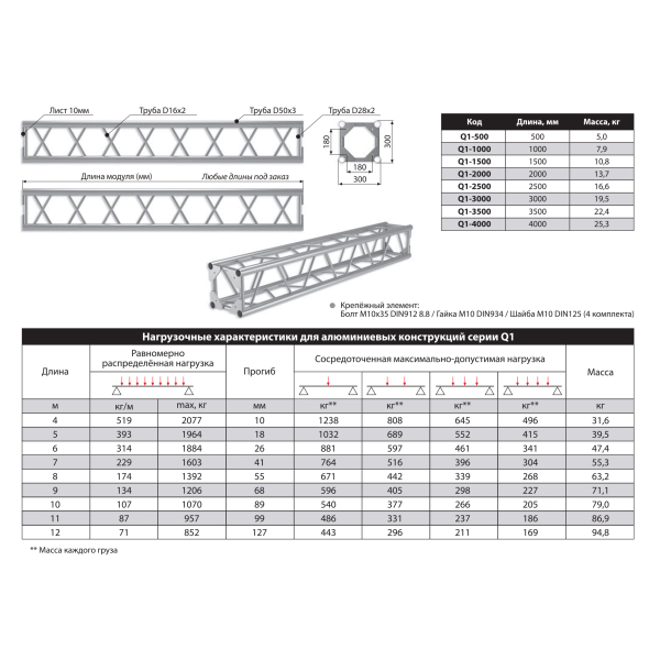 Крепежный элемент: Болт M10x35 DIN912 8.8 / Гайка М10 DIN934 / Шайба M10 DIN125.