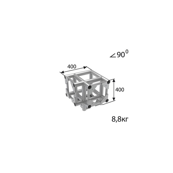 Стыковочный узел для 3-х ферм под 90 градусов, угловой, 300x300 мм, d50x3 \ d16x2 мм. Крепежный размер 180х180 мм, М10. Рисунок перемычек круговой.