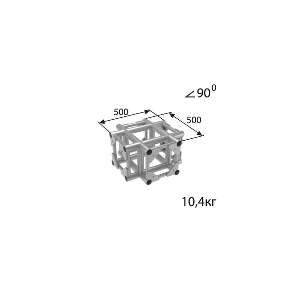 Стыковочный узел для 4-х ферм под 90 градусов, крест, 300x300 мм, d50x3 \ d16x2 мм. Крепежный размер 180х180 мм, М10.