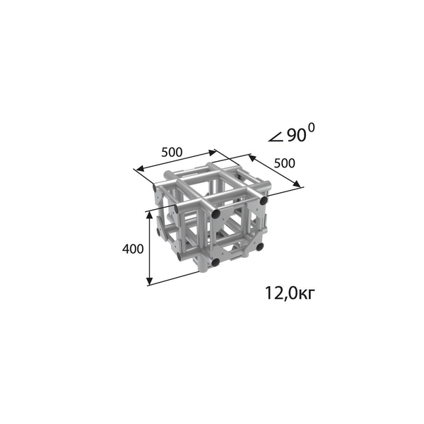 Стыковочный узел для 5-и ферм под 90 градусов, 300x300 мм, d50x3 \ d16x2 мм. Крепежный размер 180х180 мм, М10.