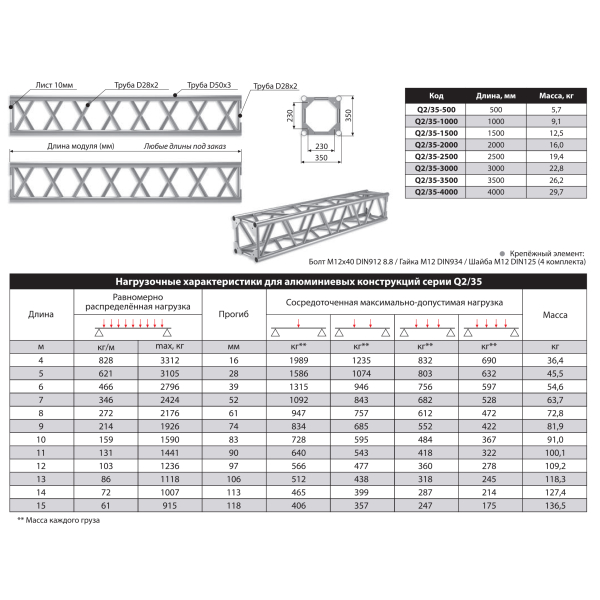 Крепежный элемент: Болт M12X40 DIN912 8.8 / Гайка М12 DIN934 / Шайба M12 DIN125.
