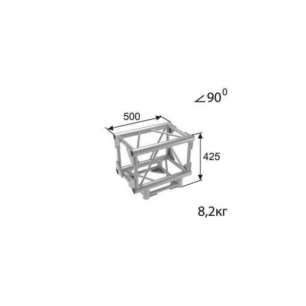 Стыковочный узел для 3-х ферм под 90 градусов, Т-образный, 350x350мм, d50x3 \ d28x2мм. Крепежный размер 230х230мм, М12.