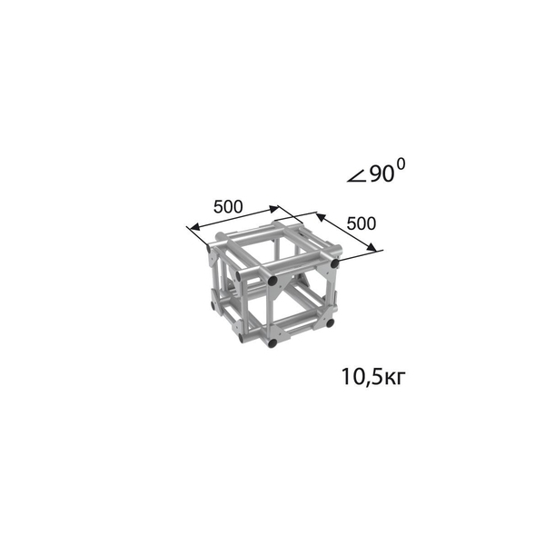 Стыковочный узел для 4-х ферм под 90 градусов, крест, 350x350мм, d50x3 \ d28x2мм. Крепежный размер 230х230мм, М12.