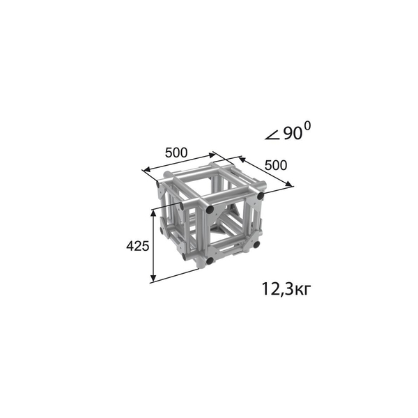 Стыковочный узел для 5-и ферм под 90 градусов, 350x350мм, d50x3 \ d16x2мм. Крепежный размер 230х230мм, М10.