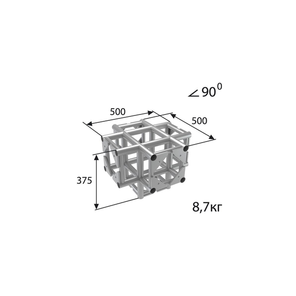 Стыковочный узел для 5-и ферм под 90 градусов, 250x250мм, d40x2 \ d16x2мм. Крепежный размер 140х140мм, М10.