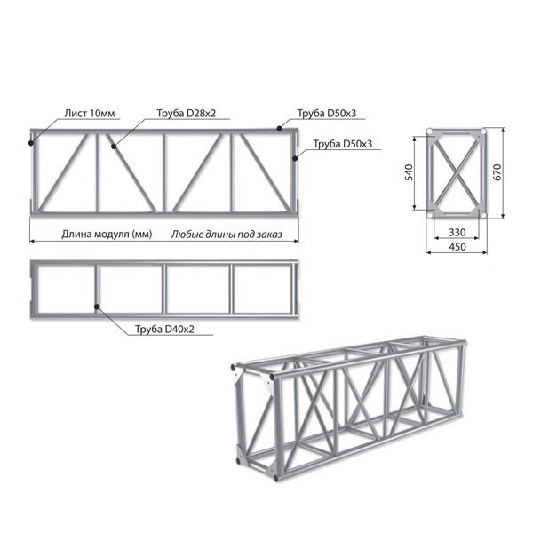 Прямой модуль прямоугольной конфигурации, длина 6000 мм