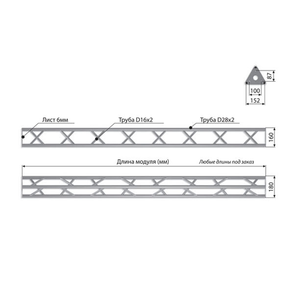 Прямой модуль треугольной конфигурации длиной 4000мм