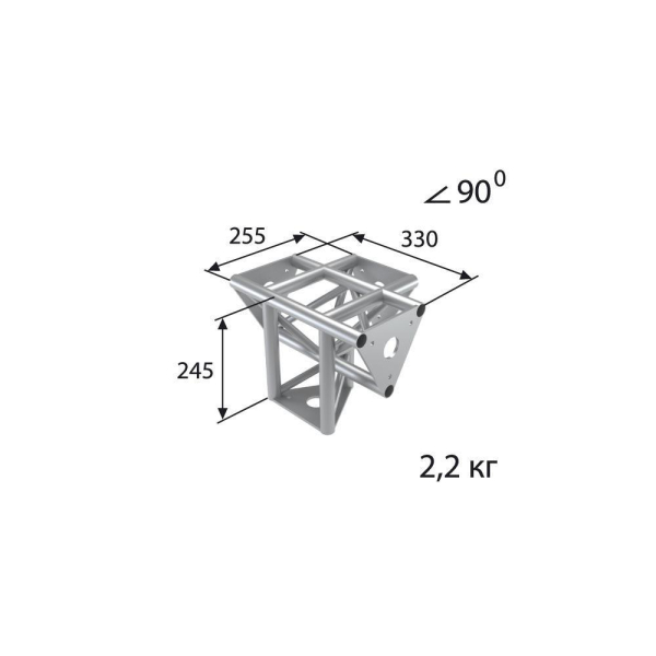 Стыковочный узел для 4-х ферм под 90 градусов, d28х2 \ d16х2мм. Крепежный размер 100мм, М8.