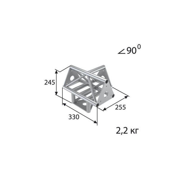 Стыковочный узел для 4-х ферм под 90 градусов, d28х2 \ d16х2мм. Крепежный размер 100мм, М8.