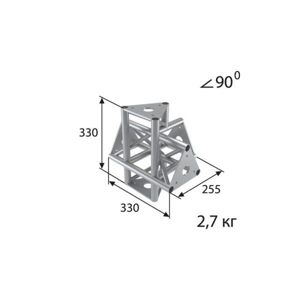 Стыковочный узел для 5-ти ферм под 90 градусов, d28х2 \ d16х2мм. Крепежный размер 100мм, М8.