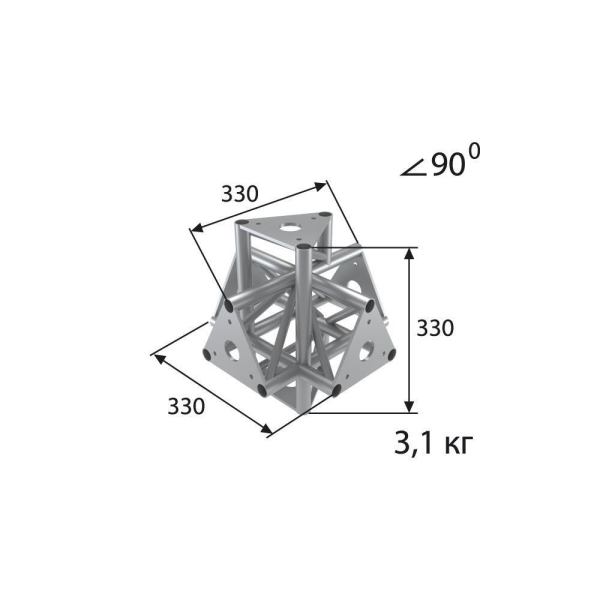 Стыковочный узел для 6-ти ферм под 90 градусов, d28х2 \ d16х2мм. Крепежный размер 100мм, М8.