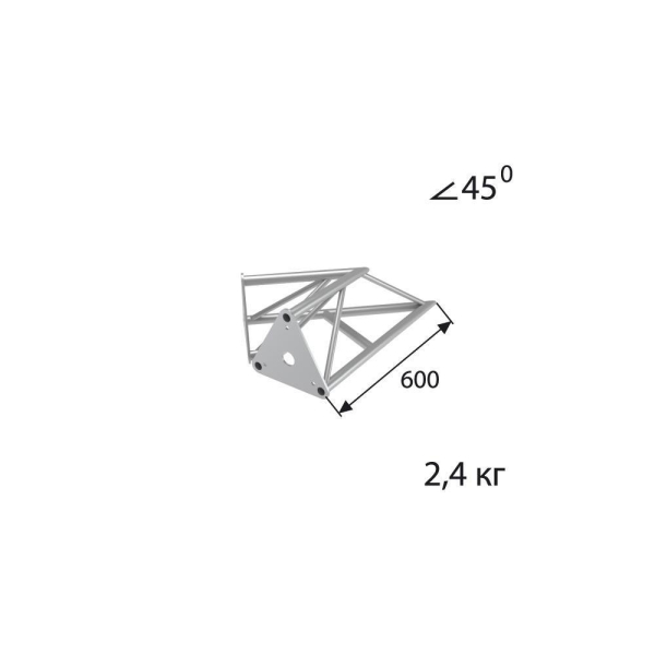 Стыковочный угол 45 градусов, d28х2 \ d16х2мм. Крепежный размер 155мм, М10.