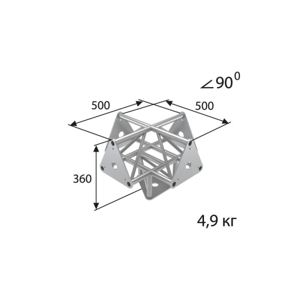 Стыковочный узел для 5-ти ферм под 90 градусов, d28х2 \ d16х2мм. Крепежный размер 155мм, М10.